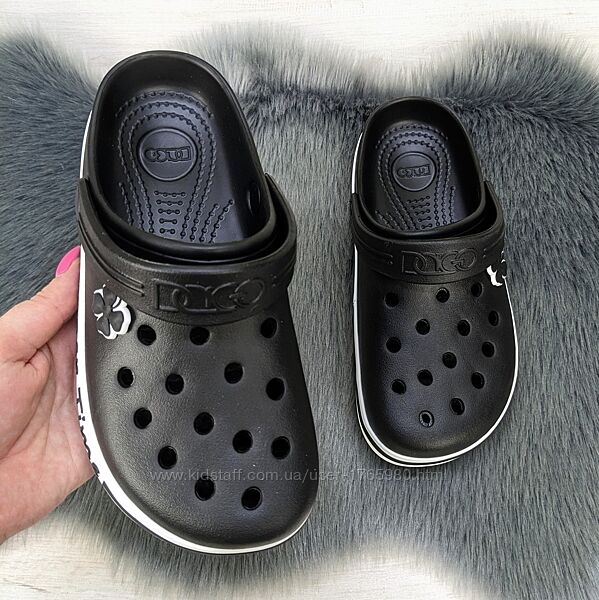 Сабо кроксы женские пена черные Даго Стиль 4540Производство - Украина, Даго Стиль.Изготовлены из EVA (пенка). Анатомическое строение стельки.Легко моются и быстро сохнут. Подойдут для пляжа, дачи, огорода, бани, сауны ....Для выбора размера смотрите замеры стельки (замеры сделаны внутри обуви рулеткой, до конца подошвы. Можно брать без запаса, хорошо садятся на ногу)