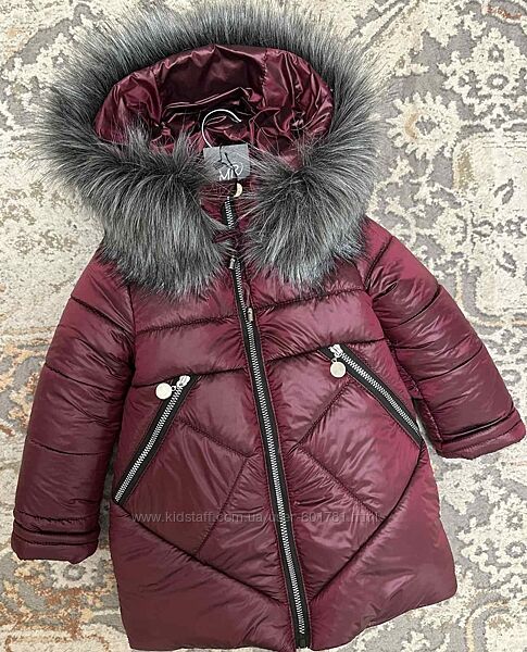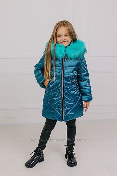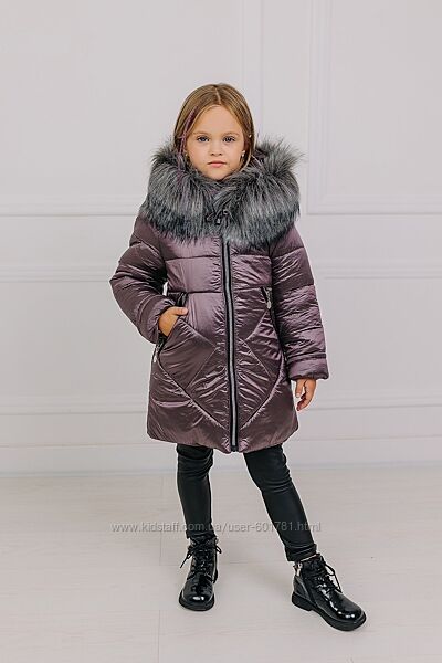 ☃️Куртка зимова на дівчаток Верх плащівка, наповнювач силіконізований синтепон 300, підкладка фліс, опушка штучна відстібається, манжетів немає.