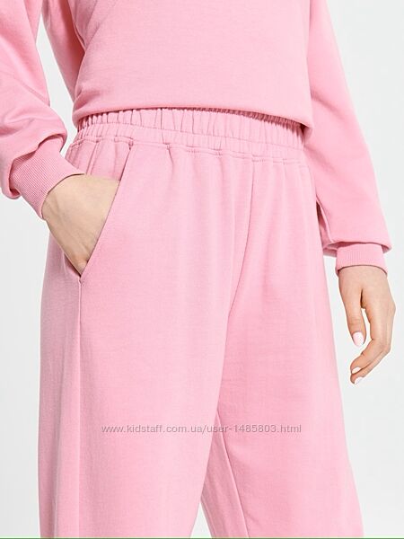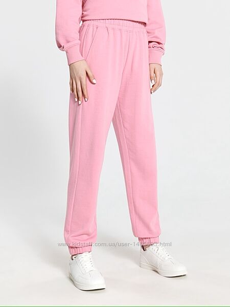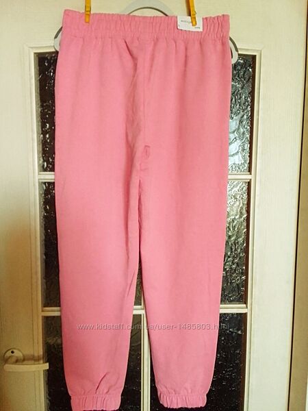 Нові трикотажні штани вільного крою ,зверху на широкій резинці (посадка висока, на талії), є дві бокових кишені , по низу штанини на резинках. Всередині петельна структура. Трикотаж дуже приємний на дотик, м´який! Штанці відмінної якості! Сезон: літо - рання осінь.Колір: рожевий.