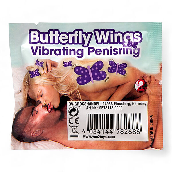 Ерекційне кільце - Butterfly Wings Vibrating PenisringЕрекційне кільце. Оснащений кишенею для розміщення вібропулі з опуклим малюнком у вигляді метелика для сильнішої стимуляції партнерки.