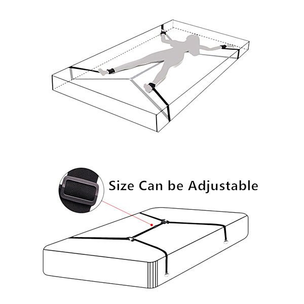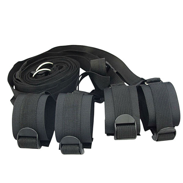 Комплект для фіксації зв'язування BDSM ― виготовлений із міцного нейлону. Кріплення для фіксації рук та ніг регулюються. Комплект призначений для фіксації на ліжку чи матраці. Комплект дуже простий у використанні, все, що Вам потрібно прокласти стропи з внутрішньої сторони матраца або ліжка, залишивши зовні кріплення для рук і ніг. Стропи регулюються залежно від розмірів матраца.