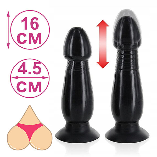 Анальная пробка с вибрацией 10 режимов и скользящим движением 16 см с присоской