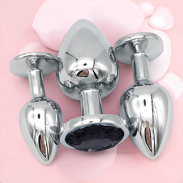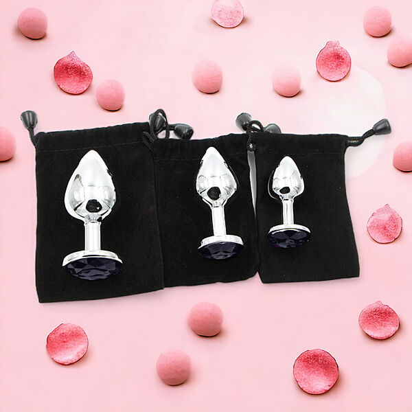 Анальная пробка набор 3 пробки для ануса с черным камнем разного размера для начинающих