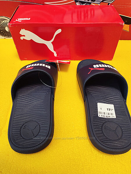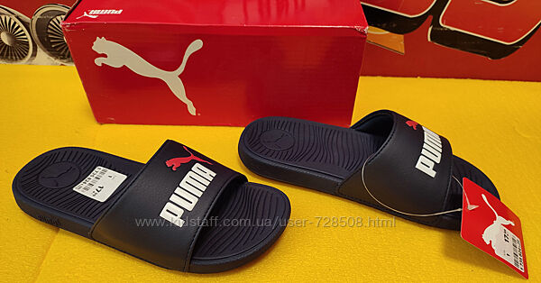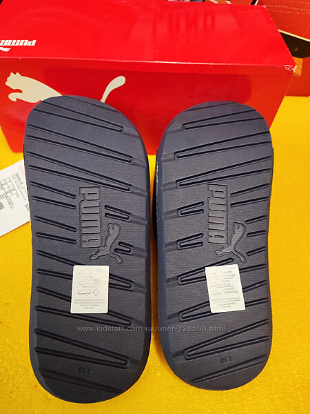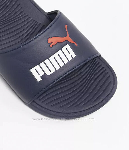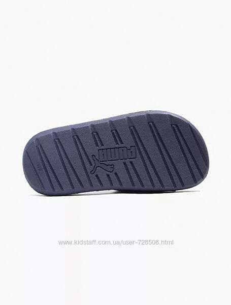 - логотип бренда Puma, расположенный на верхней части шлепанцев и на боковых панелях подошвы, придает обуви стильность;
