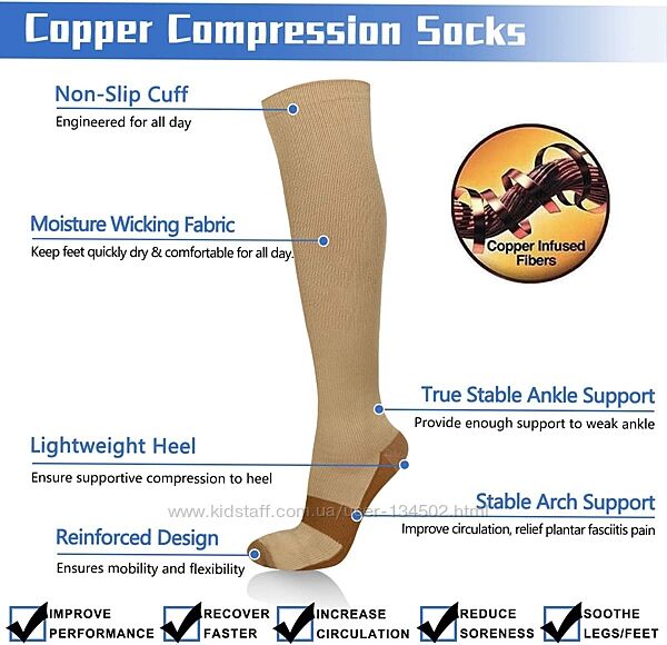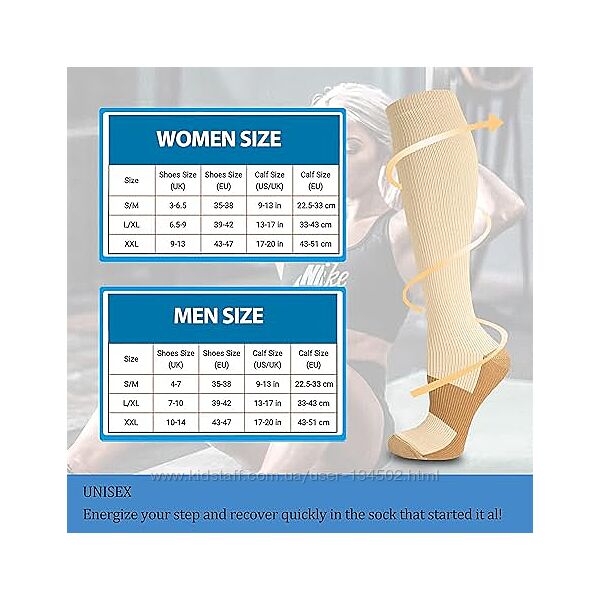 Компресійні гольфи. Роз. S-M ( 35-40), L-XL (41-46) . Унісекс. Нові. Куплені в СШАДля тих, хто багато годин працює стоячи на ногах, або для тих, хто активно займається спортом
