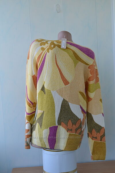 Ніжний вовняний джемпер Damart, на бирці розмір 14-16, на них і йде. М´який, ніжний, дуже еластичний, завдяки наявності еластану забезпечуєвідчутну легкість рухів. Цей светр виготовлений із суміші матеріалів із