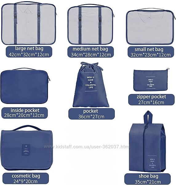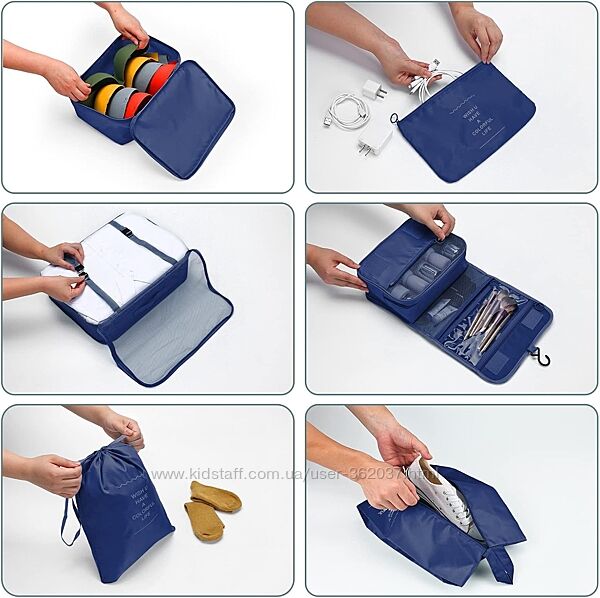 Подробное описание: Комплект дорожніх органайзерів для одягу, білизни, косметики та аксесуарів