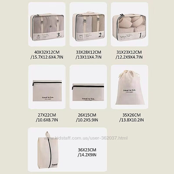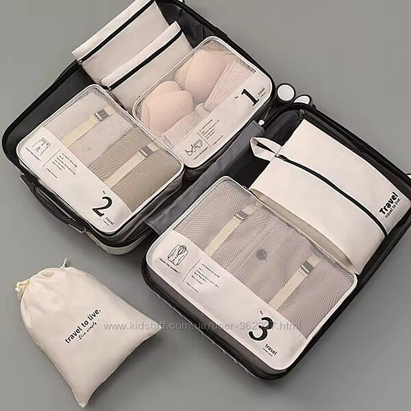 Зробіть свої подорожі комфортними та стильними! Зберігайте порядок і тримайте під рукою всі важливі речі з набором дорожніх сумок із 7 предметів.