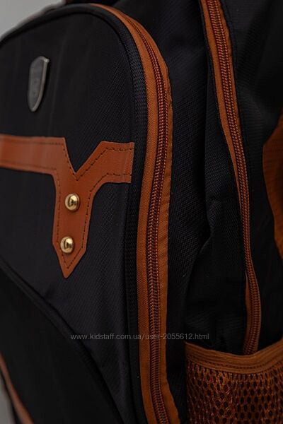 Шкільний рюкзак на 3 відділення виготовлений з поліестеру. Застібається на блискавку. На лицевій стороні розміщена вставка світло-коричневого кольору.Заміри (фактичні заміри можуть відрізнятись +- 2 см)
