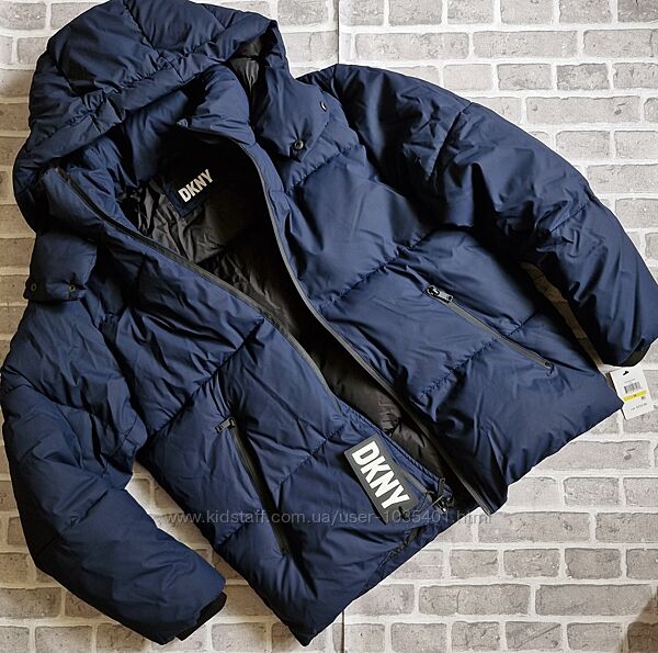 Продам классную брендовую мужскую куртку DKNY, новая. Заказывала через баера, но не подошёл размер: по бирке М, но большемерит на Л.Качество - супер, вся фирменная фурнитура, капюшон отстегивается, карманы на молниях. Внизу есть утяжка (спрятана внутри). Наполнитель синтетический, теплая, сезон- зима.Полуобхват груди 63см