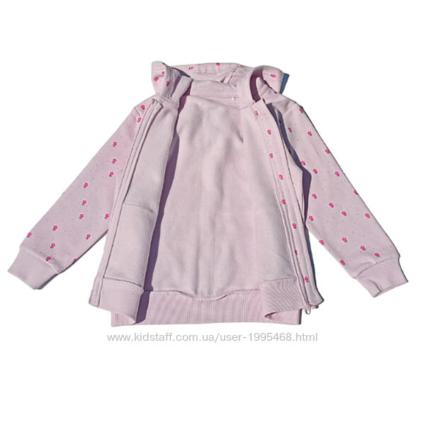 Шикарний спортивний костюм на флісі від George. Високоякісний трикотаж (еко-бавовна) та фліс, резинка в поясі продубльована шнурівкою, щільні манжети на рукавах та штанинах для кращого прилягання. Блискавка на толстовці має захист від травмування личка. Відмінне поєднання ніжного рожевого кольору та яскравих квіточок додають відмінного вигляду цьому костюму. Ідеальний як готовий outfit для прогулянок в прохолодну погоду або як домашній костюм в холодну пору року. ⠀Розмір: 3/4 р, 98/104 см, худі: плечі – 30 см, ПОГ – 33 см, рукав – 35 см (від горловини - 41 см), довжина по спинці – 41 см. Штани: ПОТ – 23 см (тягнеться до 29 см), ПОСт – 36 см, довжина – 57 см, внутрішній шов – 40.