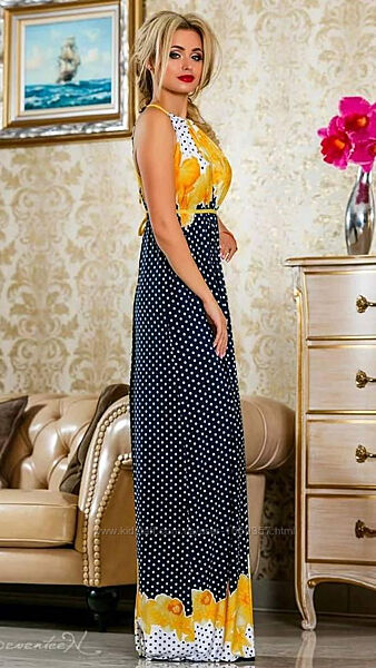 Подробное описание: Платье женское летнее длинное с цветами П924