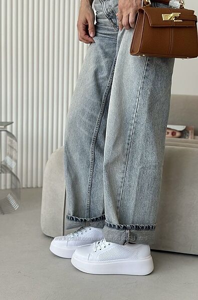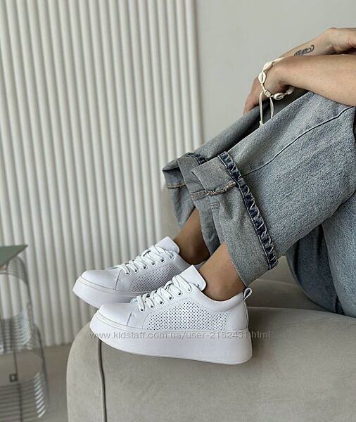 кросівки жіночі білі на платформі, Натуральна шкіра з перфорацією, розмір в розмір, платформа 5,5 см36 - 23,5 см