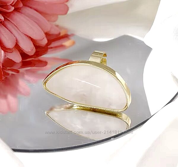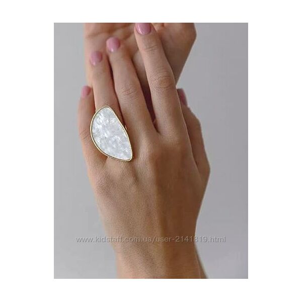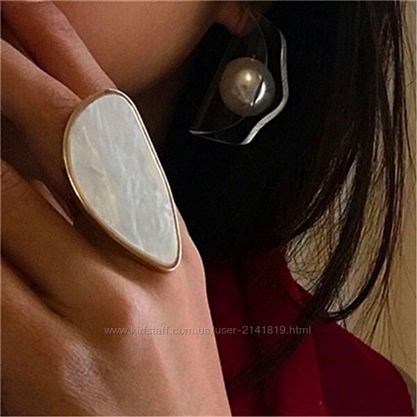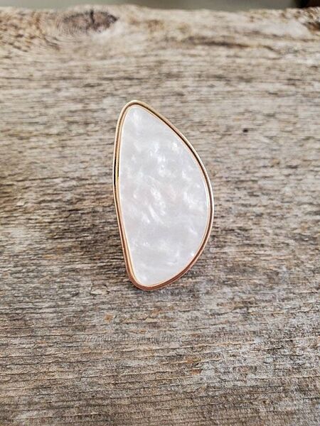 Массивное крупное кольцо с перламутром, большое белое колечко перламутр