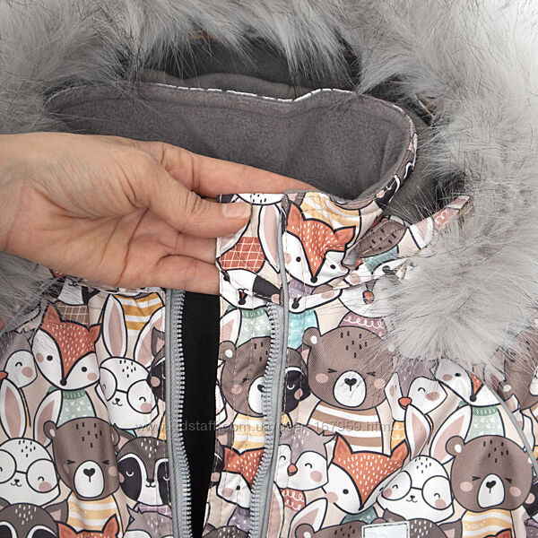 Великий ергономічний капюшон, повністю утеплений флісом. Знімна антиаллергенна штучна опушка на застібці-блискавці сконструйована, щоб не заважати малюкові - красиво обрамляє обличчя і не лізе в очі.