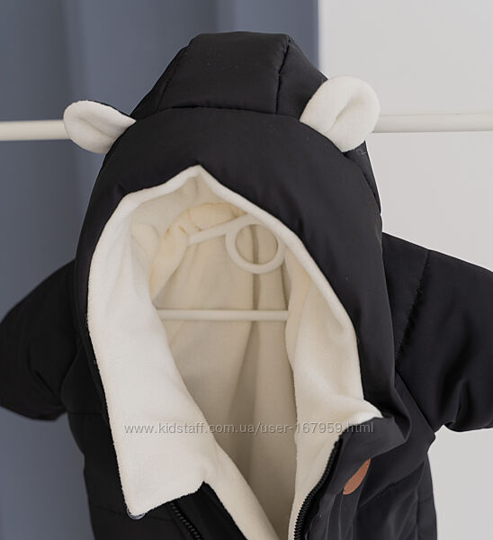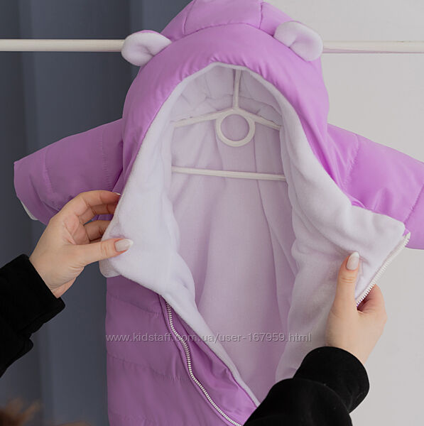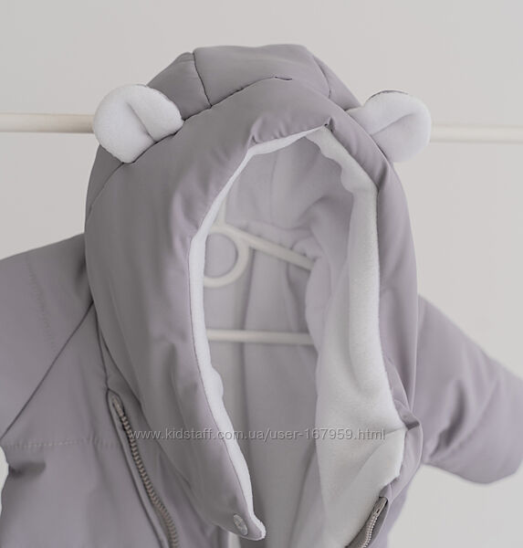 Демісезонний комбінезон з плащової тканини. Утеплений силіконізованим синтепоном, підклад - фліс полар. Важливим плюсом є те, що манжети відвертаються – це дає можливість зберегти руки малюка у теплі.