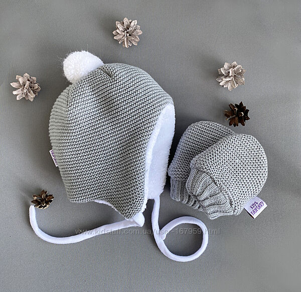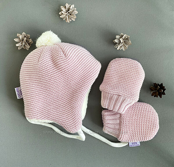 Подробное описание: Зимовий дитячий набір зимова шапка на флісі та рукавички для новонароджених