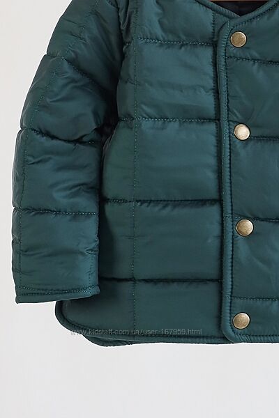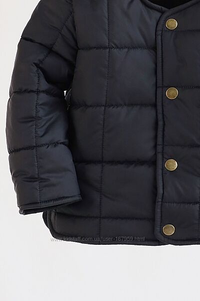 Зверху простьобана плащовка, всередині підкладочна тканина, застібається на кнопки, утеплена силіконізованим синтепоном, який зберігає тепло та захищає від вітру.