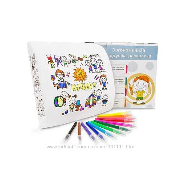 Ергономічна подушка-розмальовка для спини – багатофункціональний подарунок вашій дитині. Знімний чохол-розмальовка та набір фломастерів є головною особливістю даної моделі.Подушка Memory foam зроблена зі спеціальної піни, яка адаптується під вигин спини, підтримує її та сприяє формуванню правильної постави у дитини.