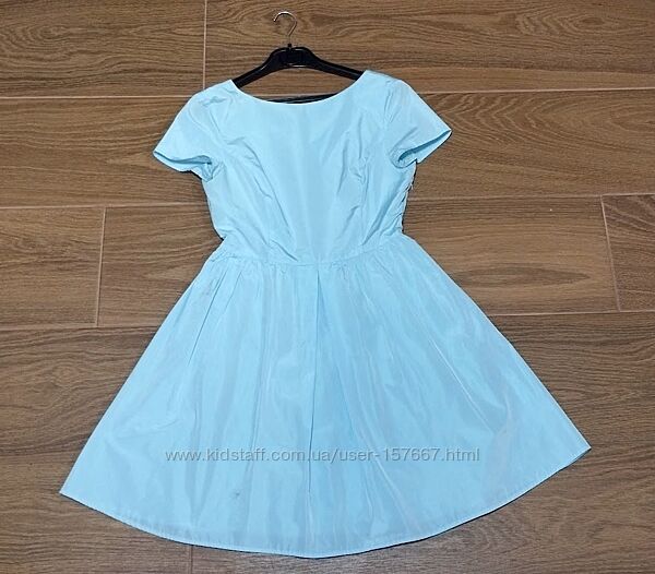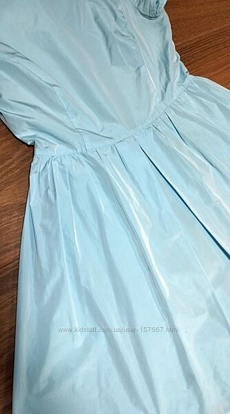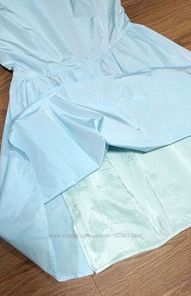Шикарный крой, качественная ткань с блеском (как тафта). Пышная юбка, отрезное по талии. В боковом шве застежка-молния. Есть подъюбник. Замеры: ПОГ – 45-46 см, ПОТ – 38см, плечи – 42 см, длина от плеча – 90 см.