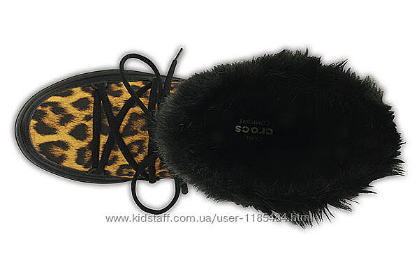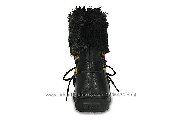 Особливості моделі: - Універсальні легкі чоботи на кожен день; - витончений жіночний силует; - висота до середини ікри чудово виглядає з джинсами та сукнями; - хутряне оздоблення та візерунки оживлять ваш зимовий гардероб. - верх з водовідштовхувального нейлону на шнурівці з хутряною облямівкою; - гумова підошва покращує зчеплення та збільшує термін служби взуття; - подвійний комфорт Crocs: устілка та підошва з піни Croslite.