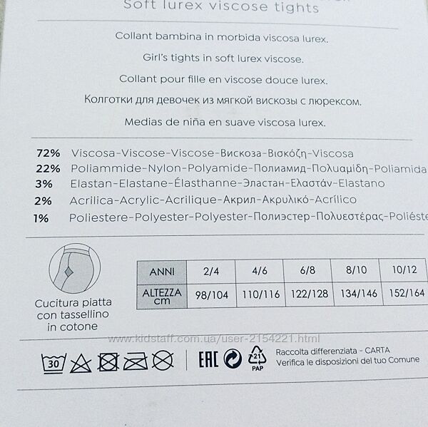 6-8 рок. 122-128 зріст ІТАЛІЯ! PEZZINI! Преміум колекція. ажурні з люрексом колготки з віскози з красивим принтом. Індивідуальна подарункова упаковка. приємні до тіла. Супер - склад: 72 % viscosa+22% nylon+3% еластан+2 acrilica+1% Полієстер. Абсолютні повномірки, не кошлатятьсярозміри: