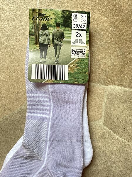 Відмінна німецька якість! Комфортні, м´які спортивні шкарпетки з високим вмістом бавовни. Зональне пошиття. Сітчасті вставки та зони розтягування. Підошва махрова,верх-сітчаста тканина. Зручний широкий манжет. Унісекс. У комплекті 2 пари. Склад: 67% бавовна, 32% поліамід, 1% еластан. В наявності розмір 39-41, бузкові з білими; яскраво-рожеві з білими. Ціна за один комплект із двох пар.