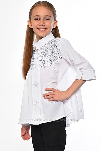 Дуже класна біла блузка для дівчат виробництва Україна. Легенька, дуже приємна до тіла, якісний пошив. Модель в стилі розлітайка, рукав 3/4 (можна підвернути), тканина софт, оздоблена декром із гепюра. Найкращий варіант для школи і урочистих подій.Розмірний ряд: