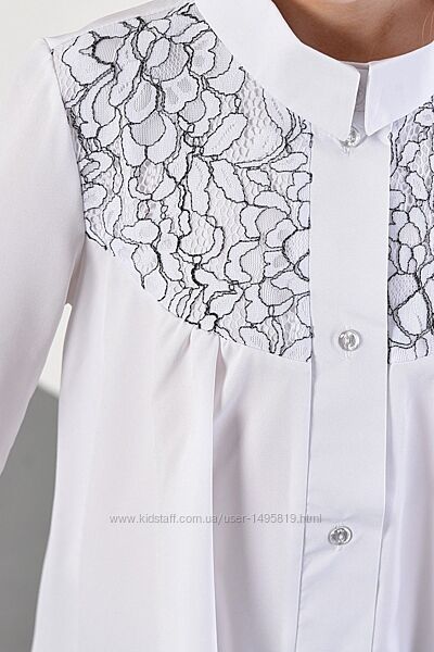 Подробное описание: Блузка з гепюровим декором для дівчат, р.116-140, Україна