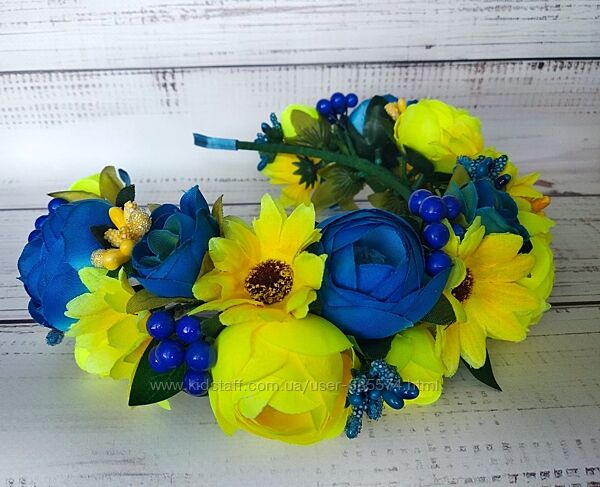 Подробное описание: Ошатний український віночок синьо-жовтий на обручі