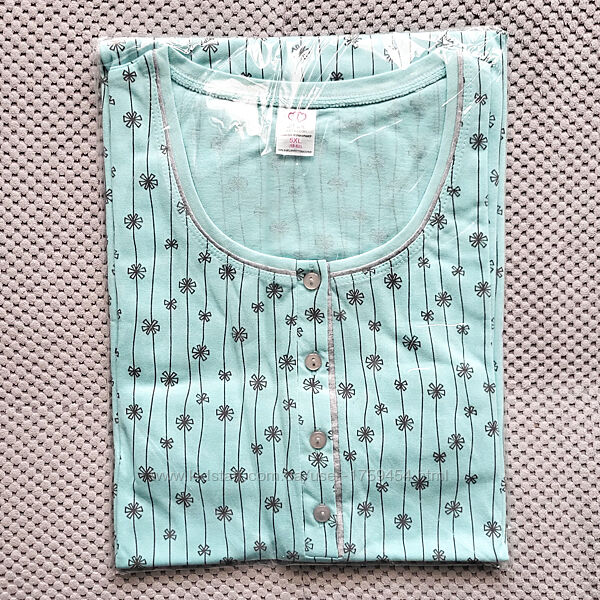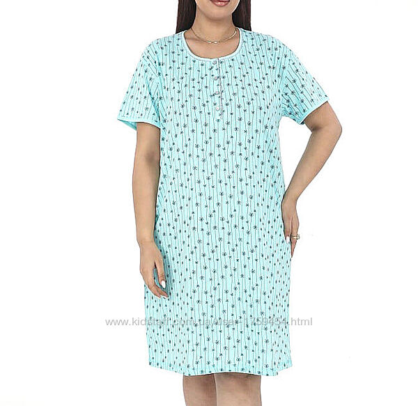 Нічна сорочка-туніка батал 5XL (маломірить) Miss Moda Туреччина. З короткими рукавами і центральною застібкою на ґудзиках. Матеріал 100% бавовна. Колір: бірюзовий.