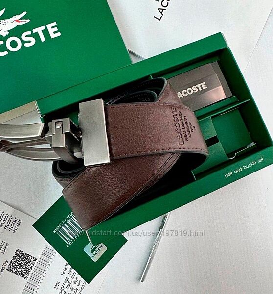 Подробное описание: Двухсторонний кожаный ремень с двумя пряжками Lacoste. Шкіряний ремінь. NEW