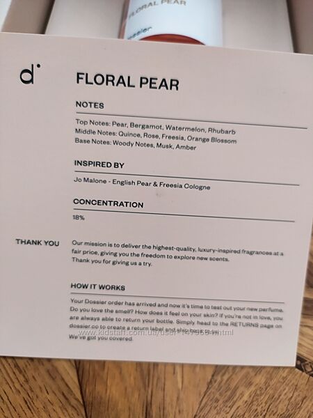 Парфумована вода Dossier Floral Pear inspired by Jo Malone’s English Pear and Freesia CologneКонцентрація: 18%