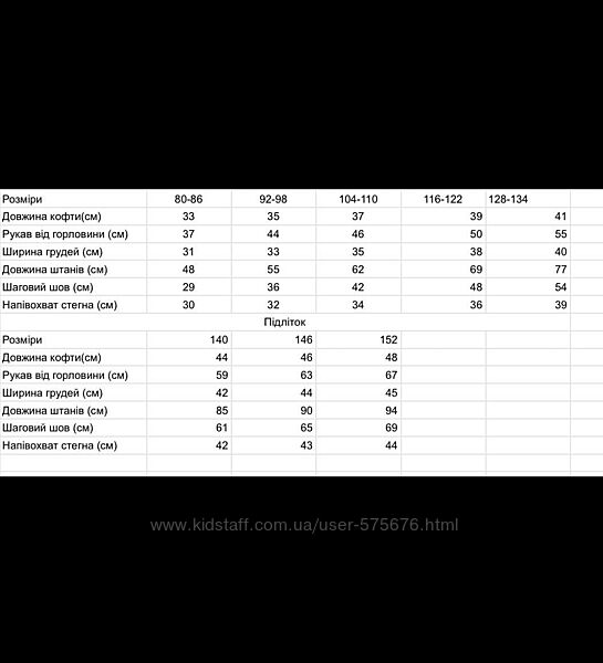 розміри: 80-86; 92-98; 104-110; 116-122; 128-134; 140; 146; 152