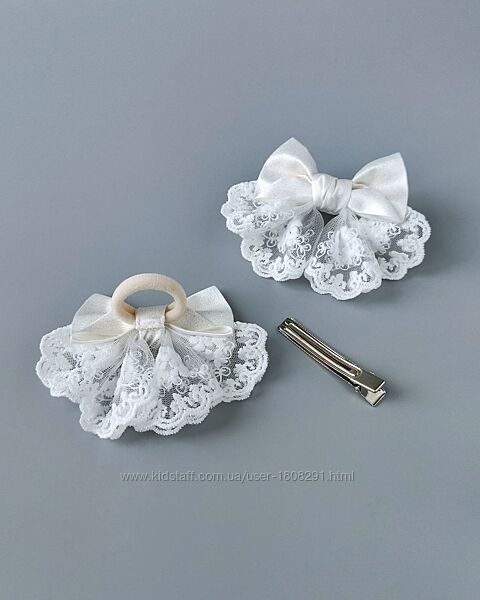 Подробное описание: Бантики молочного кольору з мереживом витончений аксесуар для зачіски.
