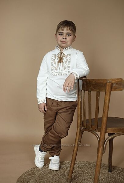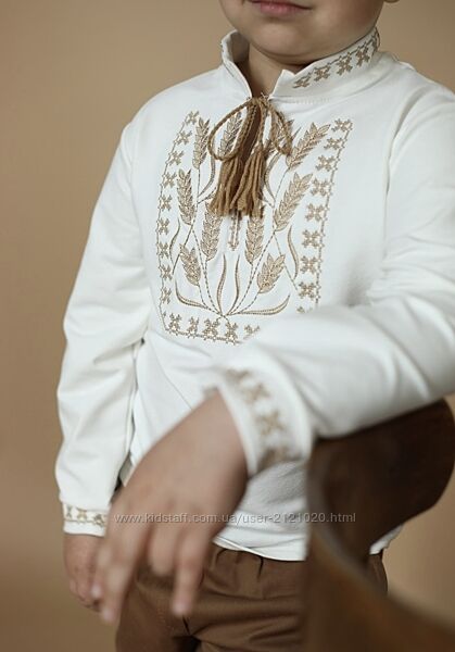 Подробное описание: Вишиванка біла трикотажна для хлопчика пшениця, вишиванки дитячі.