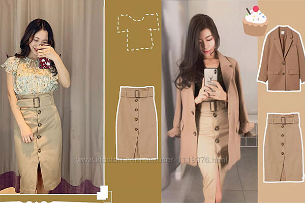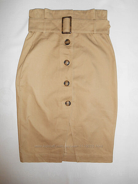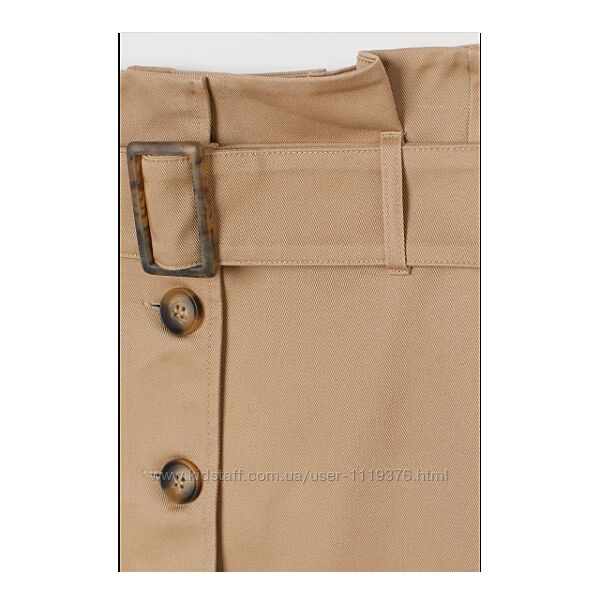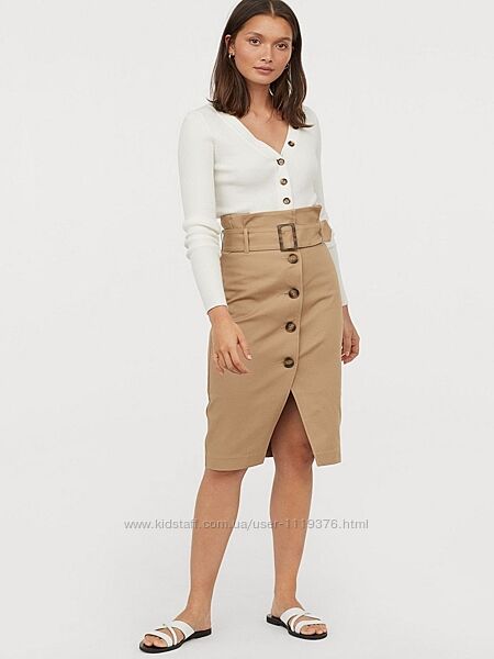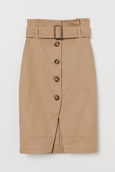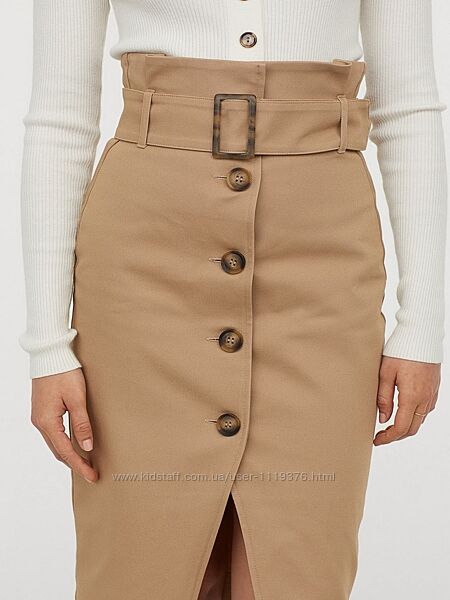 💎 Приталенная юбка из плотного хлопкового твила с высокой талией из широким съемным тканевым ремнем с пластиковой пряжкой. Застегивается на пуговицы спереди и потайные застежки на крючки на талии. Без подкладки.