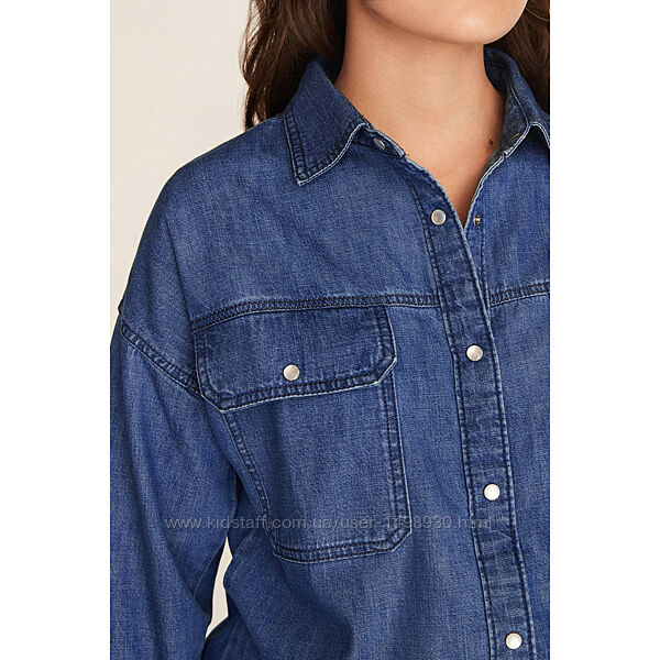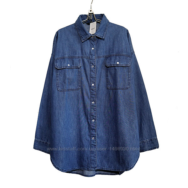 Актуальна подовжена джинсова сорочка оверсайз на кнопках р.16-18