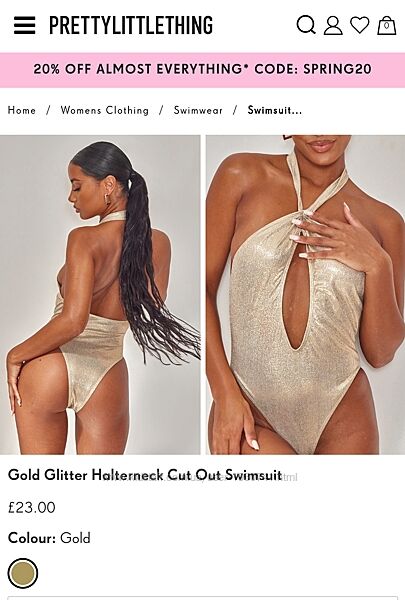 Подробное описание: Золотистый сдельный слитный суцільний цельный купальник Prettylittlething