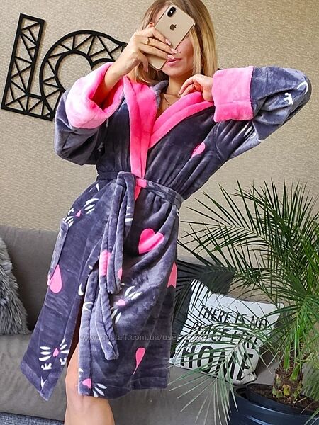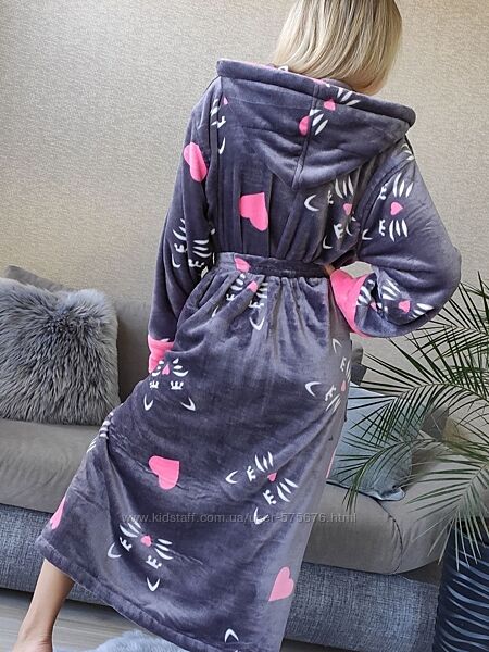 М´якенький ніжний плюшевий халатик з капюшоном🔥Розмір: універсал 42-46 за рахунок запаху, довгі підходять до 48.