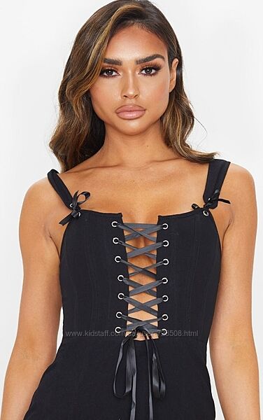 Prettylittlething. Из Англии. В наличии. Платье миди с шнуровкой.
