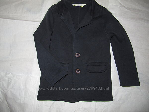 Трикотажный костюм Mango темно-синего цвета в идеальном состоянии.Рост указан 110,но брала сыну в 1-й класс, на рост 116 сел отлично.Состав:75%коттон,25% полиэстер.