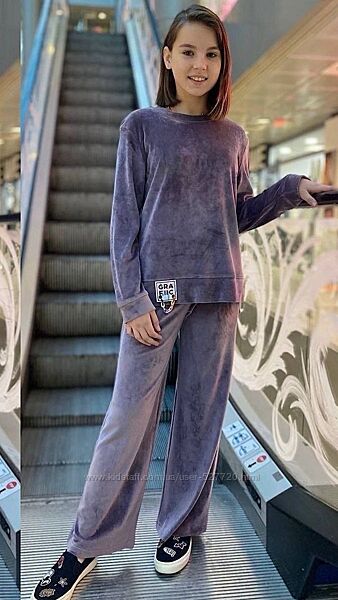 Подробное описание: Прогулянковий велюровий костюм для дівчинки, штани та кофта, брючный костюм