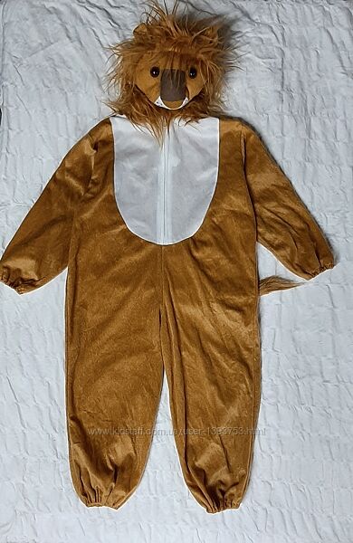 Карнавальный новогодний костюм Львёнок или Лев (207). Костюм состоит из комбинезона с капюшоном и хвостом. Возраст 4-5 лет. Длина комбинезона от плеча 89 см, длина рукава 38 см, полуобъем груди 42 см, шаговый 37 см.Другие объявления продавца