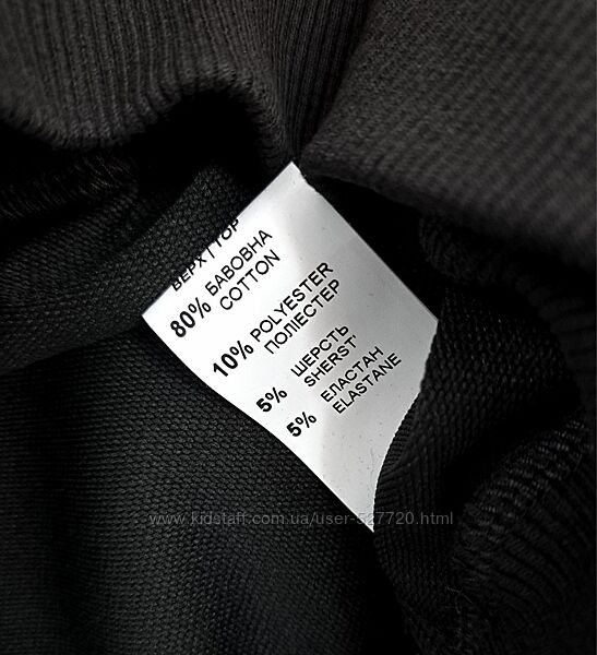 Состав ткани: 80% коттон, 10% полиэстер, 5% эластан, 5% шерсть