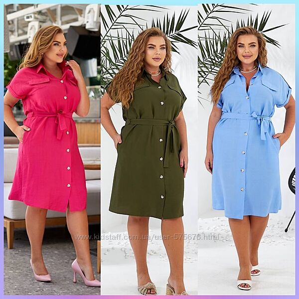42-44, 46-48, 50-52, 54-56 сукня рубашка льон натуральний