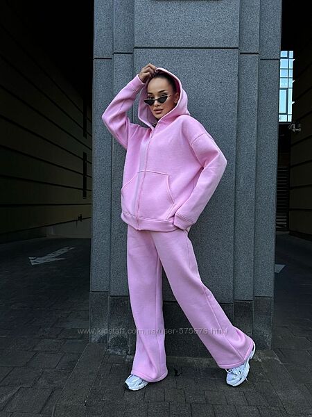 Ідеальний прогулянковий костюм, сіпка на блискавці з капюшоном + трендові широкі штани на резинці та кишенями . М´яка, тепла, не кашлатиться, не розтягується. Пошитий із найдорожчою Турецької тринитки на флісі (Пеньє).💞