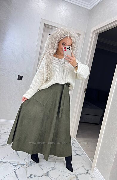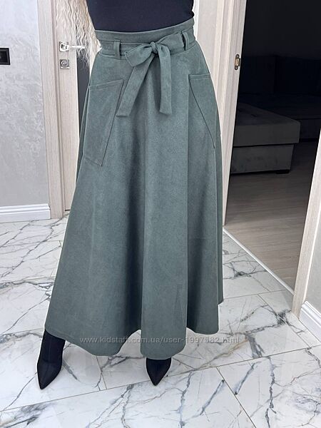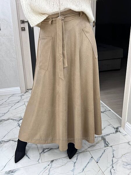 Подробное описание: Спідниця трапеція замшева максі з високою талією довга