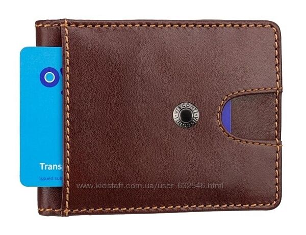 Затиск зроблений з якісної шкіри. Вся фурнітура - високоякісна сталь, прослужить не один рік. З тильного боку слот під картки, візитки. Затиск має захист RFID