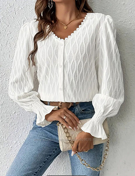 5037Блузка легкая для лета, из тонкого жаккардового трикотажа с длинными рукавами, впереди застегивается на пуговицы. Ткань тянется.